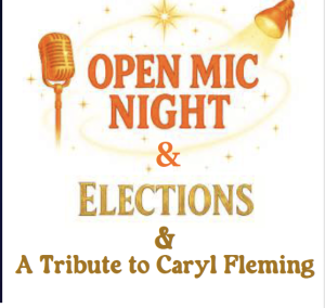 It’s Open Mic night where you can test new material, gain exposure, develop performance skills or just do your thing. Plus elections and a tribute to our founder Caryl Fleming.